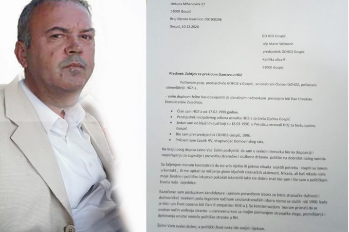 Prvi predsjednik HDZ-a Gospić, Anton Vlainić izašao iz HDZ-a