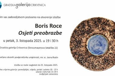Izložba pod nazivom “Osjeti preobrazbe”, autora Borisa Roce, bit će otvorena ovog petka u 19.30 sati u Gradskoj galeriji Crikvenica. Izložbu će otvoriti povjesničarka umjetnosti Jasna Rodin. Kako je istaknula Rodin, Boris Roce je vrsni hrvatski keramičar, kojemu […]