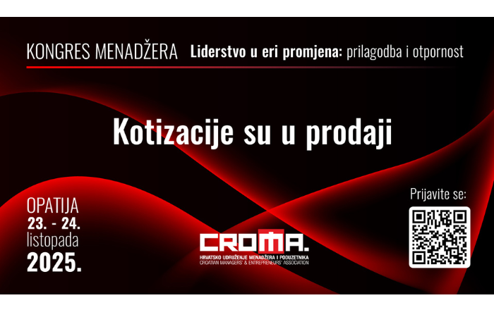 Zagreb, 8. listopada – Još dva tjedna ostala su do konferencije „Kongres menadžera“ koju u Opatiji organizira Hrvatsko udruženje menadžera i poduzetnika CROMA. Kongresu će prisustvovati vodeća imena iz sektora gospodarstva, a program se i ove godine održava pod pokroviteljstvom predsjednika Republike Hrvatske.