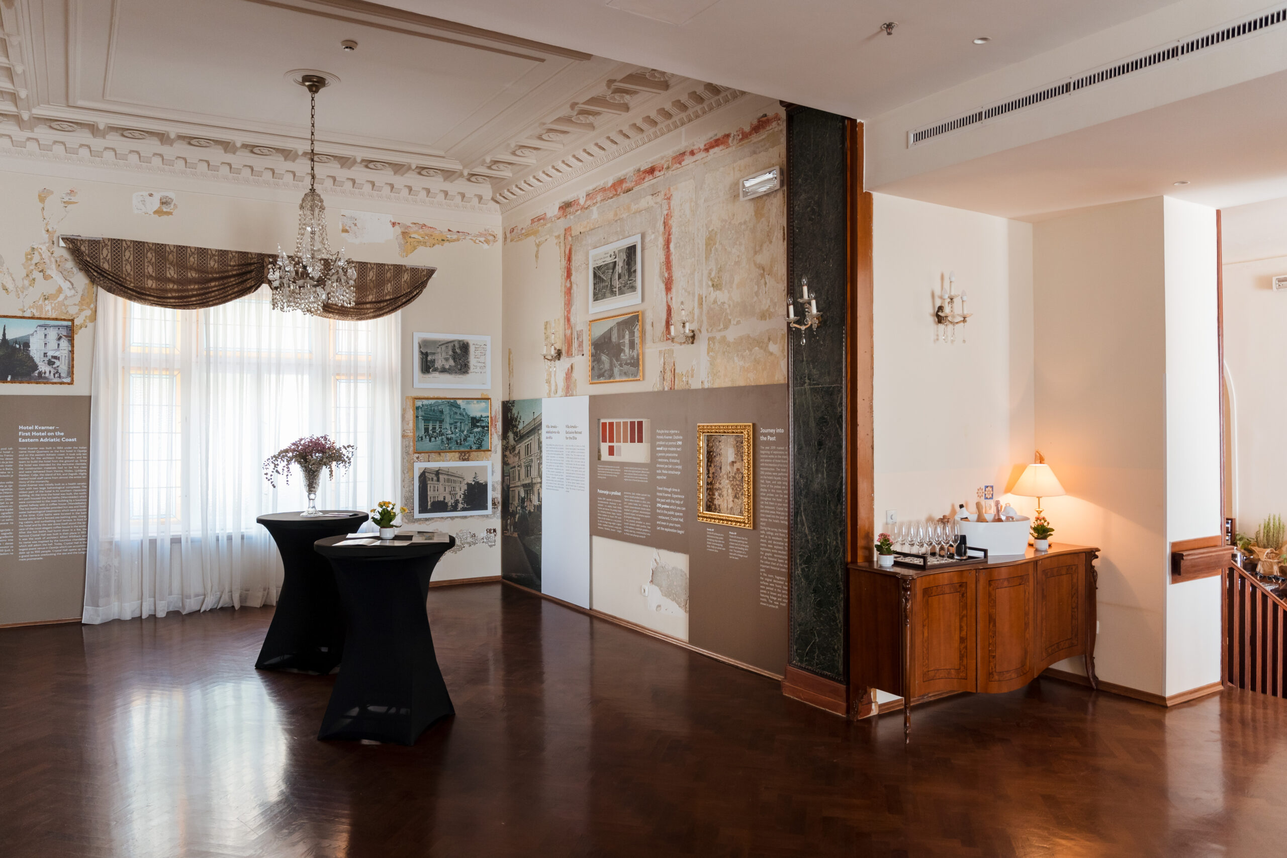 U hotelu Kvarner predstavljen je i poseban izložbeni prostor koji prikazuje impresivnu povijest hotela i turizma Liburnijske rivijere, zanimljive faze izgradnje, ali i najnovija konzervatorska istraživanja koja su u tijeku. Gosti hotela kroz ovaj postav imaju priliku prošetati kroz povijest i saznati iz prve ruke kako napreduju posljednja istraživanja te kako će izgledati brojni detalji u interijeru, od izvornih oslika zidova pa do dekorativnih elemenata.