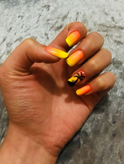 Ombre nokti veliki su hit na društvenim mrežama i izgledaju fantastično u narančasto-žutoj ili pastelnoj izradi. Dodate li tome još neki ljetni pečat poput palme- možete bezbrižno uživati u ljetnim danima.